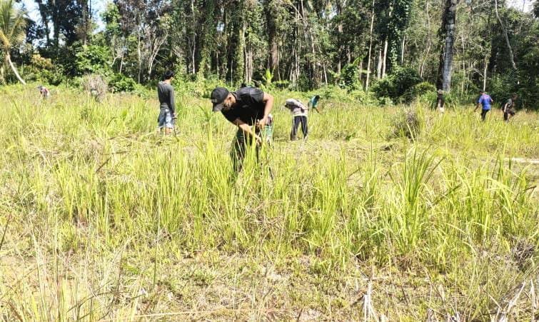 Kepala Desa Bungkang, Bapak Rigen, mengucapkan terima kasih kepada personel Satgas Pamtas RI-Malaysia Yonif 642/Kapuas dan warga yang telah melaksanakan pembersihan lapangan sepak bola Desa Bungkang.
