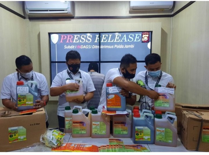 Kasubdit I Indaksi Ditreskrimsus Polda Jambi AKBP Yuyan Priatmaja, di Jambi, Kamis, mengatakan modus tersangka dengan mengganti label herbisida bermerek asli dengan produk palsu, setelah dioplos merek berbeda yang dijual kepada petani di Provinsi Jambi dengan kualitas di bawah standar yang asli.