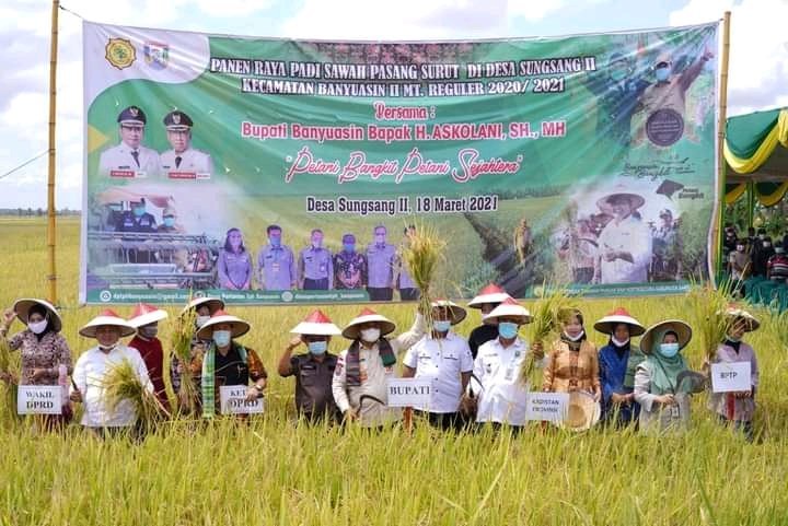 menyampaikan kepada masyarakat bahwa saat ini pemerintah kabupaten Banyuasin akan selalu hadir di tengah petani, akan mencari solusi apa-apa yang menjadi permasalahan di tengah para petani saat ini.