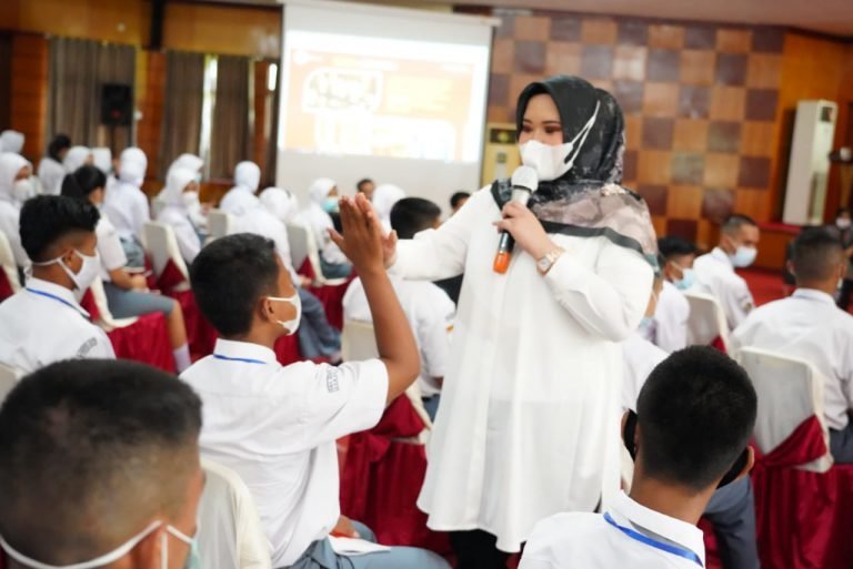 BANYUASIN.KRSumsel.com – Ketua TP PKK Kabupaten Banyuasin, dr. Sri Fitriyanti Askolani menjadi narasumber di Pelatihan Kepemimpinan Siswa Angkatan II Se-Kabupaten Banyuasin untuk membentuk karakter pemuda yang berintegritas demi terwujudnya Banyuasin Bangkit dan Cerdas di Auditorium Pemerintah Kabupaten Banyuasin, Jum’at (19/03/2021).