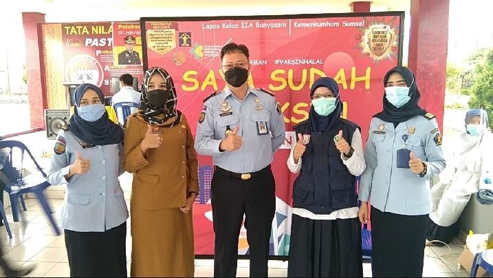 Berkat kerjasama Lapas dengan Pemerintah Kabupaten Banyuasin melalui Dinas Kesahatan Kabupaten BanyuasinD, hal ini seluruh petugas Lapas sudah di Vaksin Covid-19, terang Ronaldo.