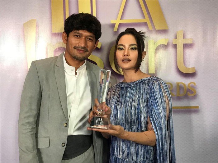 Pada kesempatan itu, Ririn Ekawati dan Ibnu Jamil juga terlihat membawa sebuah piala. Mereka baru saja mendapatkan penghargaan Fashionable Newly Wedding dari !nsert Fashion Awards 2021.
