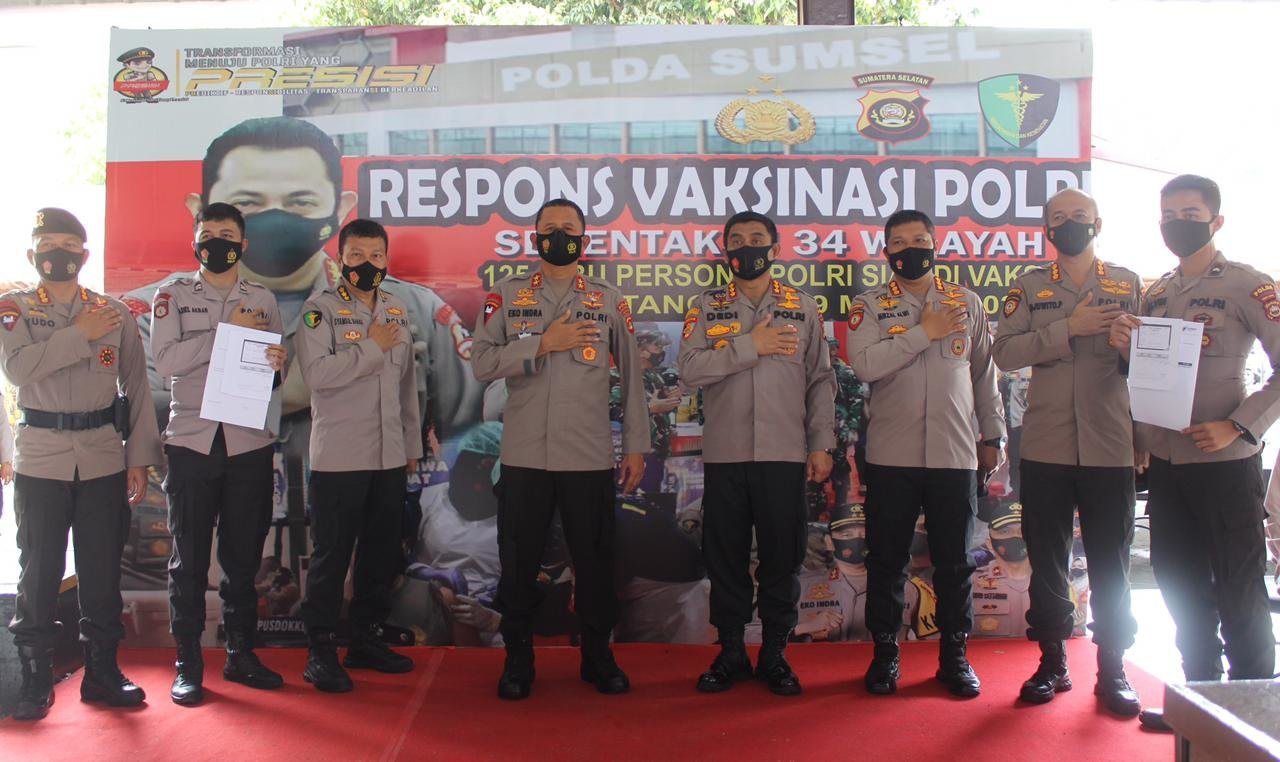 Kabid Humas Polda Sumsel juga menegaskan, bagi personel yang belum vaksin sebelumnya tetap mengikuti vaksin sesuai peraturan yang berlaku, termasuk anggota Polri itu sendiri,Pns dan PHL sore ini ,