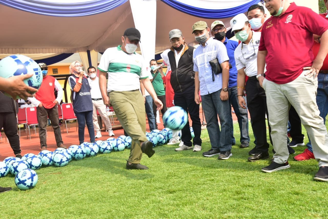 Dalam kesempatan itu Gubernur HD tak hanya menyerahkan bola secara simbolis sebagai bagian dari program sejuta bola. Namun Ia juga memberikan sertifikat kepada semua peserta. Bahkan melakukan kick off dan menjajal lima alat pemotong rumput teranyar yang dihadirkan Direktur Utama JSC.