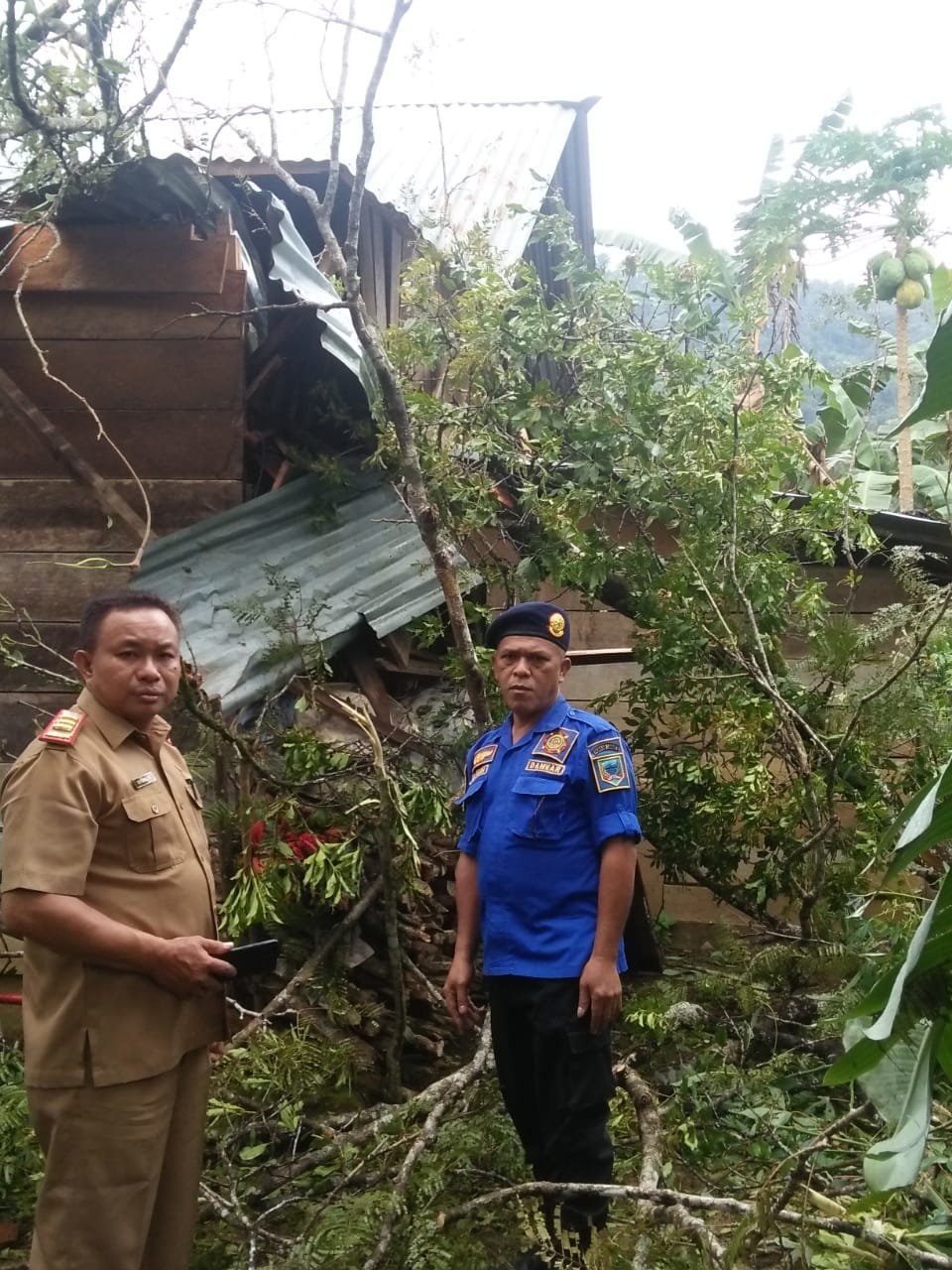 “Penyebabnya tertimpa pohon petai, adapun kejadiannya jam 03.00 Wib dini tidak ada korban jiwa,” ungkapnya
