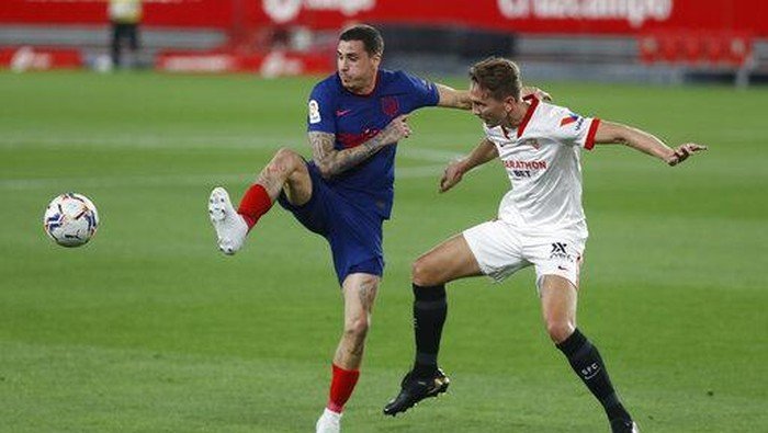 Sevilla akhirnya memecah kebuntuan pada menit ke-70. Sundulan Marcos Acuna menjebol gawang Jan Oblak.