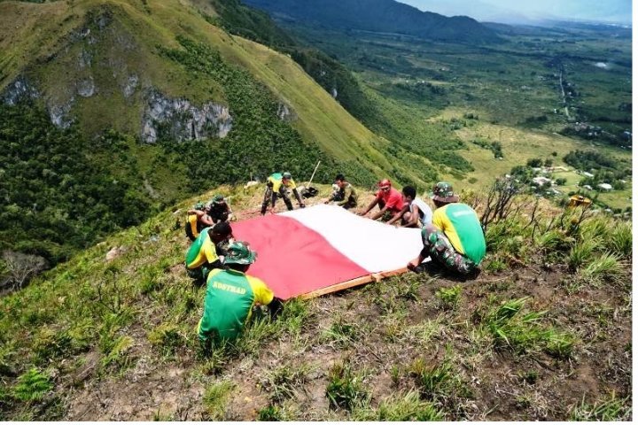 Danpos Kurulu Letda Inf Permadi dalam keterangan diterima ANTARA, Jumat dini hari mengatakan, dengan membawa balok-balok kayu dan diiringi angin yang kencang tidak menyurutkan semangat anggota Satgas TNI Pos Kurulu bersama kepala suku untuk menaiki gunung demi berkibarnya Sang Saka Merah Putih di ketinggian 2071 Mdpl.