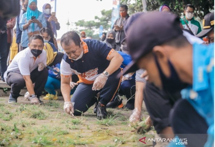 “Aksi bersih-bersih itu merupakan contoh sekaligus mengajak kepada seluruh pemerintah dari tingkat kabupaten hingga desa serta warga Jember untuk peduli pada kebersihan lingkungan masing-masing,” kata Hendy di alun-alun Jember.
