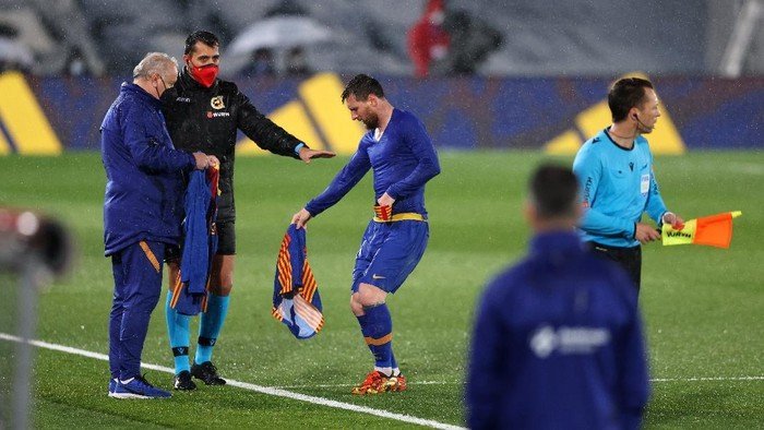 Messi juga sampai harus berganti pakaian untuk mengurangi rasa dingin. Dia menggunakannya pada 10 menit akhir pertandingan