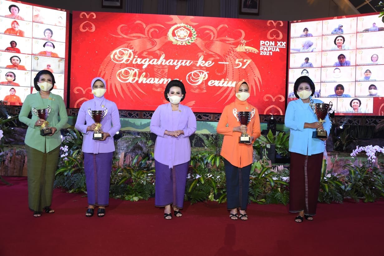 Sementara itu, Ketum Dharma Pertiwi Ny. Nanny Hadi Tjahjanto mengatakan bahwa Dharma Pertiwi dalam perjalanan lima puluh tujuh tahun pengabdiannya bukanlah waktu yang pendek. Turut berkiprah dan mengambil bagian dalam upaya membangun bangsa serta tetap konsisten dalam meningkatkan kepedulian sosial, pendidikan, dan kesejahteraan Prajurit TNI beserta keluarga besarnya.