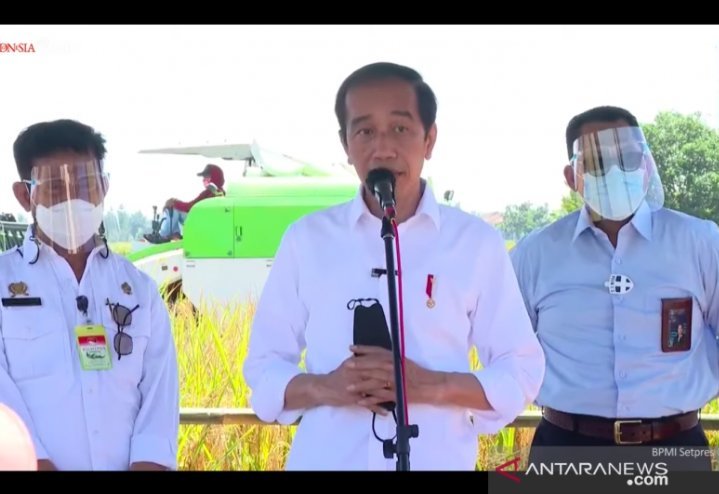 “Hasil panen bagus, bisa mencapai delapan ton. Kedua, harga gabah juga sudah naik Rp4.200 (per kilogram),” ujar Presiden Jokowi.