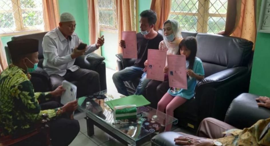Muara Enim, KRSumsel – Satu keluarga masuk Islam di Kantor Urusan Agama ( KUA ) Muara Enim, Kabupaten Muara Enim, Sumatera Selatan. Satu keluarga ini, masuk Islam dengan senang hati, tanpa ada paksaan dari siapa pun. Kegiatan sakral ini dilakukan pada Kamis (22/4/2021).