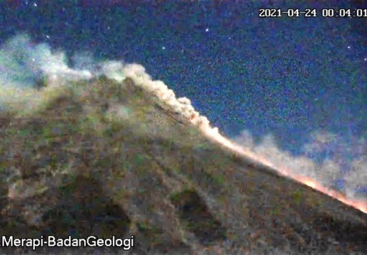 Awan panas guguran kembali terpantau pada pukul 00.42 WIB dengan jarak luncur 700 meter ke arah tenggara, amplitudo maksimum 40 meter, serta durasi 77 detik.