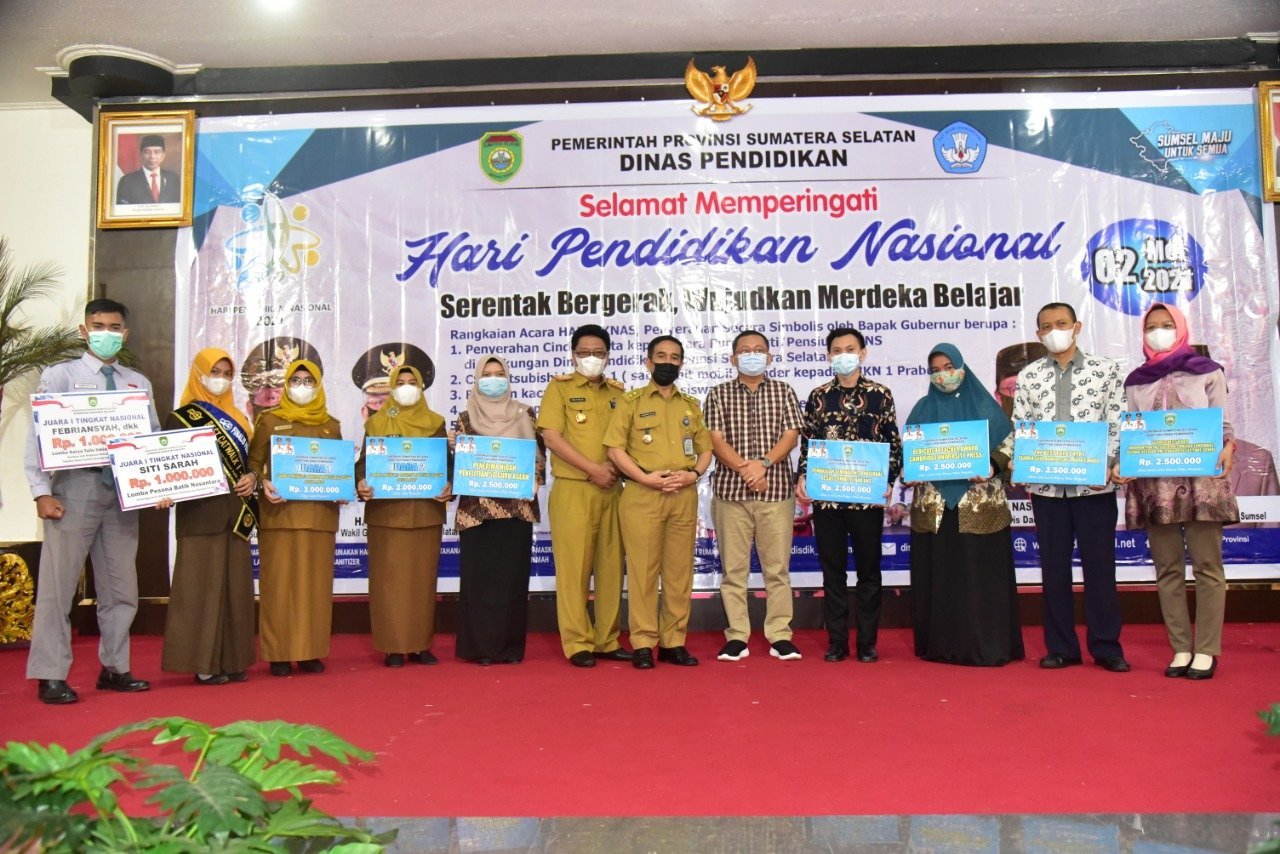 “Atas nama pemerintah Provinsi Sumsel dan segenap masyarakat Sumsel Saya mengucapkan Selamat Hari Pendidikan Nasional Tahun 2021 kepada semua insan pendidikan. Melalui peringatan Hardiknas ini mari kita terus bersemangat meningkatkan kualitas diri dan daya saing baik secara nasional, regional maupun global,” jelas Herman Deru.