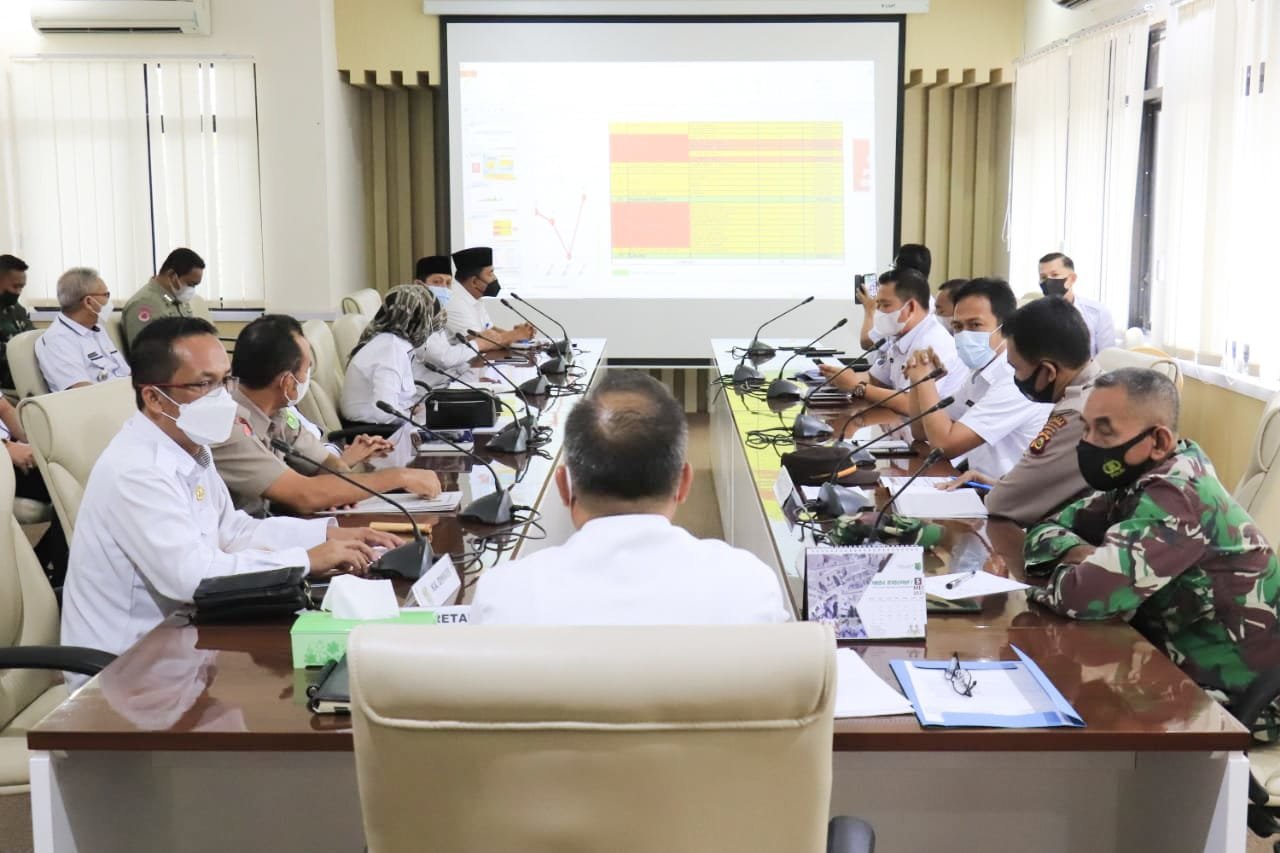 Protokol Kesehatan dan Penanganan COVID-19 di Kabupaten Muba bersama Kepala Perangkat Daerah dan Camat di Ruang Rapat Randik Pemkab Muba, Selasa (04/05/2021).