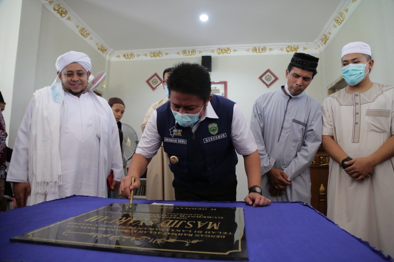 Peresmian tersebut dilakukan Herman Deru usai melaksanakan safari Jum’at di masjid tersebut yang ditandai dengan penandatanganan prasasti.