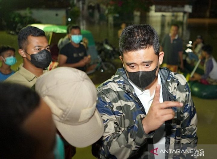 Menantu Presiden Joko Widodo ini langsung menginstruksikan aparatur kecamatan dan kelurahan yang terdampak banjir membantu warga sekitar yang mengungsi, karena air Sungai Deli menggenangi rumah mereka.