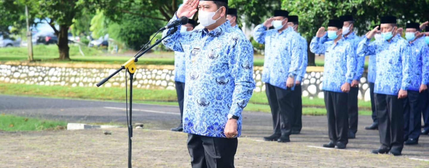 BANYUASIN.KRSumsel.com – Hari pertama masuk kerja setelah libur hari raya Idul Fitri 1442 H Bupati Banyuasin H. Askolani, S.H.,M.H pimpin apel gabungan di lingkungan Pemerintah Kabupaten Banyuasin, Senin (17/6) di lapangan upacara Kantor Bupati Banyuasin.