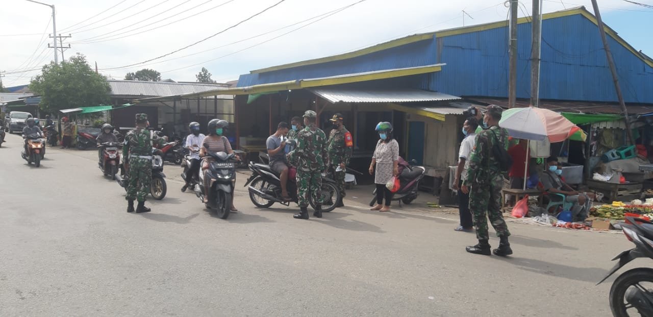 Kegiatan membagikan masker dan himbauan tersebut dilaksanakan oleh personel Kodim 1208/Sambas dan Koramil 01/Sambas yang dipimpin langsung oleh Dandim 1208/Sambas Letkol Inf Setyo Budiyono, S.H., M.Tr.(Han).