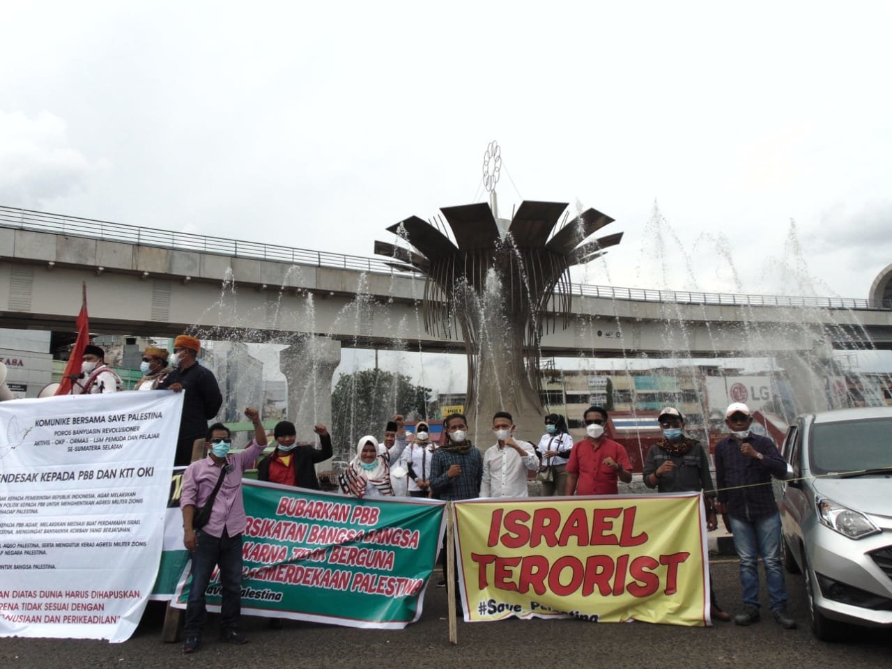 PALEMBANG-KRSumsel.com – Puluhan Aktivis Pemuda, Mahasiswa, LSM , OKP dan Ormas menggelar Aksi damai Solidaritas Peduli Palestina, Jum’at (21/05/2021) di bundaran Air Mancur, Masjid Agung Palembang, Sumatera Selatan (Sumsel), sekira Pukul 14.00 WIB.
