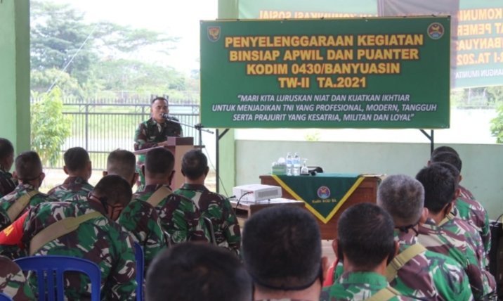 BANYUASIN.KRSumsel.com – Dalam rangka meningkatkatkan Kemampuan aparat Teritorial Kodim 0430/BA, melaksanakan kegiatan Pembinaan Kesiapan Aparat Kewilayahan (Binsiap Apwil) dan Kemampuan Teritorial (Puanter) triwulan II tahun 2021, bertempat diMakodim 0430/BA selasa (25/05/2021)
