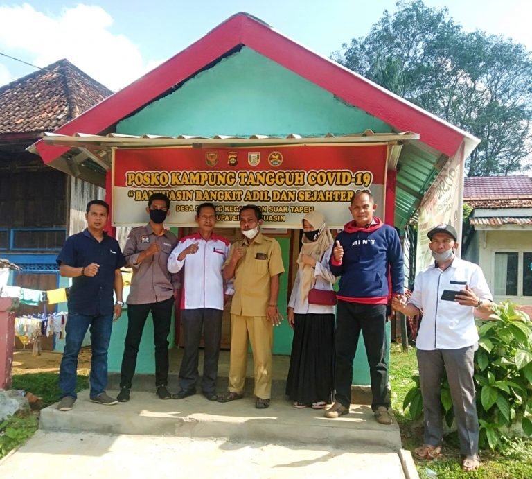 Pendamping Desa Teknik Infrastruktur (PDTI) Kecamatan Suak Tapeh Febriwansyah, ST bersama Pendamping Desa Pemberdayaan (PDP) Baharudin, ST, saat mengecek posko tersebut sangat mengapresiasi Desa Sedang yang telah selesai membangun Posko Desa Tangkal Covid- 19 dengan baik.