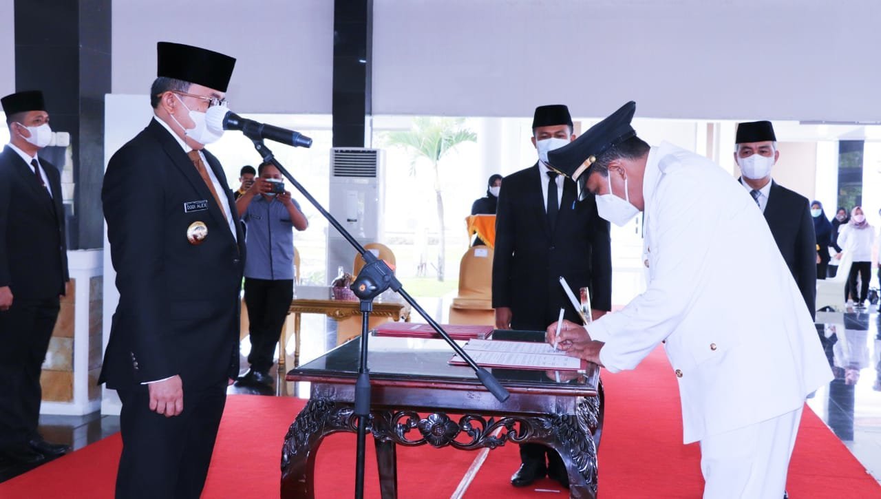 Adapun peserta lelang JPT yang dilantik yaitu, Kepala Dinas Perikanan Hendra Tris Tomy SSTP MEc Dev, Kepala Dinas Perumahan dan Kawasan Pemukiman Ir Rismawati Gathmyr MEng, Kepala Badan Kepegawaian dan Pengembangan SDM Endang Dwi Hastuti SE MSi.