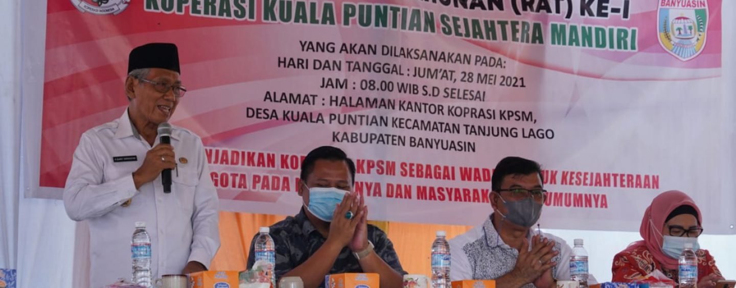 BANYUASIN.KRSusmel.com – Koperasi Kuala Puntian Sejahtera Mandiri (KPSM) menggelar Rapat Anggota Tahunan (RAT) Jumat (28/5/2021). RAT perdana kepengurusan KPSM yang di buka langsung oleh Wakil Bupati Banyuasin H. Slamet Somosentono, SH ini berlangsung di Halaman Kantor KPSM Desa Kuala Puntian Kecamatan Tanjung Lago Kabupaten Banyuasin.