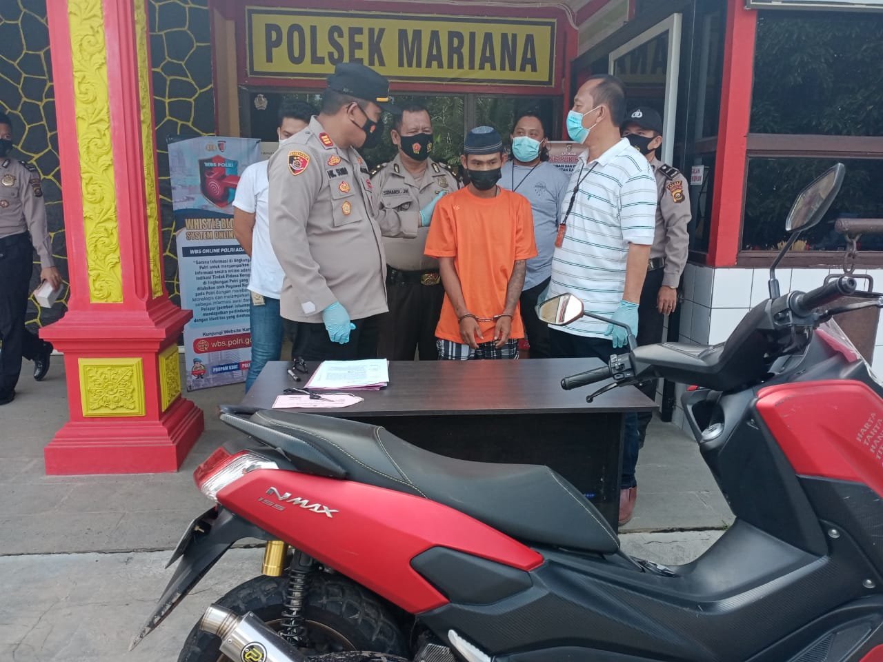 Banyuasin,KRSumsel.com – Budi Saputra nekat larikan motor Yamaha N Max nopol 3467 JAU milik korban Riri Saputra yang kunci kontaknya masih menempel di motor.