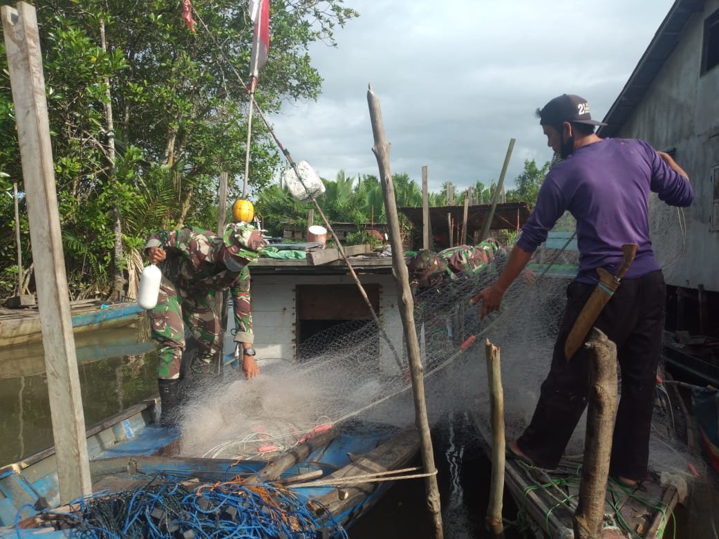Kalbar, KRsumsel.com – Dalam rangka penggalangan dan pembinaan kelompok nelayan di wilayah binaannya serta memberikan motivasi dimasa Pandemi Covid-19, Prajurit Yonif 645/Gty melaksanakan kegiatan Komunikasi Sosial (Komsos) dengan anjangsana ke Kelompok Masyarakat Nelayan K.U.B Bayur di Desa Sebubus, Kec. Paloh, Kab. Sambas, Kalbar, Sabtu (29/5/2021).