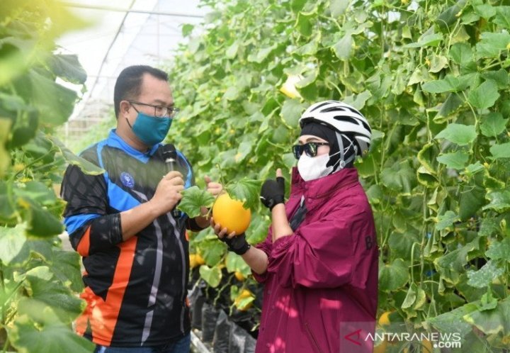 Wakil Direktur Utama BNI, Adi Sulistyowati, berkunjung ke kampus IPB Dramaga Bogor, juga melakukan kegiatan bersepeda dan panen buah melon di ATP IPB di Desa Cikarawang, Dramaga, Bogor.