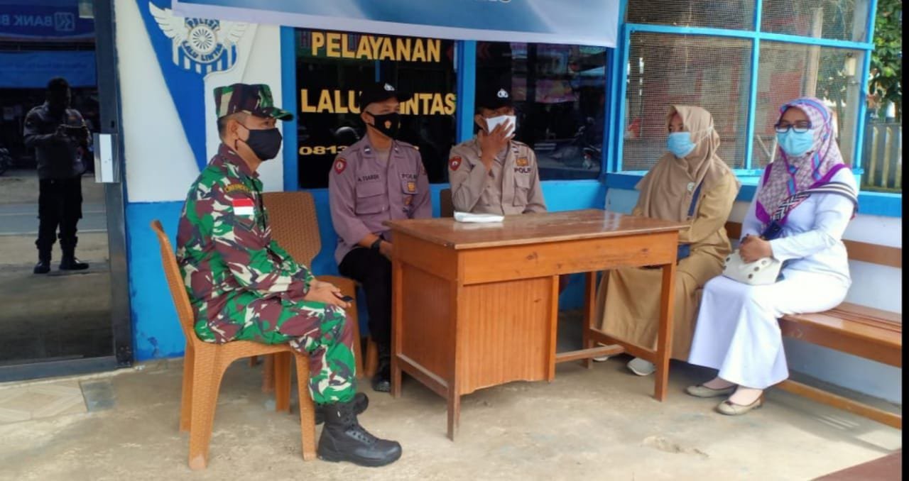Sambas, KRsumsel.com – Koramil 06/Slk dan Polsek serta Puskesmas Selakau melakukan imbauan dan pembatasan kerumunan di Komplek Pasar Selakau, Desa Sungai Nyirih, Kecamatan Selakau, Kabupaten Sambas, Minggu (30/5/2021).