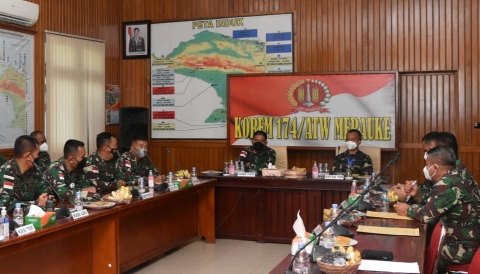 Merauke, KRsumsel.com – Tim Post Audit Inspektorat Jenderal Angkatan Darat (Itjenad) melaksanakan kunjungan kerja ke Korem 174 Merauke dalam rangka Pengawasan dan Pemeriksaan (Wasrik) Program Kerja dan Anggaran Korem 174/ATW Merauke beserta Satuan di jajarannya TA. 2020, Senin (31/5/2021).