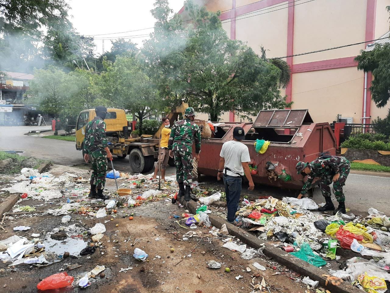 Komandan Yonif 642/Kapuas, Letkol Inf Alim Mustofa, di Mako Yonif 642 Kab. Sintang, Kalbar, mengatakan bahwa dalam kegiatan tersebut, tiga personel Kipan B Yonif 642 yang dipimpin Serda Muh. Syarif bersama dengan warga sekitar melaksanakan pembersihan di sekitar Pasar Sentral Sanggau.