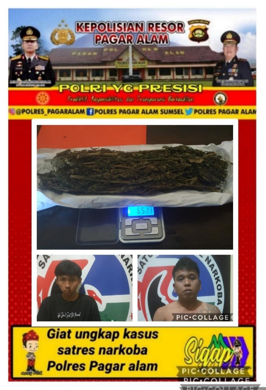 kedua tersangka tersebut di tangkap berawal dari anggota Polsek Pagaralam Selatan mendapatkan informasi dari masyarakat bahwa disebuah pondok di Wilayah swakarya diduga akan terjadi transaksi narkotika jenis ganja .