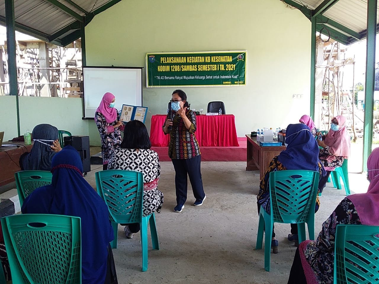 “Oleh karena itu, dalam rangka menindak lanjuti program dari komando atas, Komando Distrik Militer 1208/Sambas bersama Dinas Kesehatan Kabupaten Sambas mengadakan kegiatan penyuluhan KB Kesehatan di Makodim 1208/Sambas,” ungkapnya.