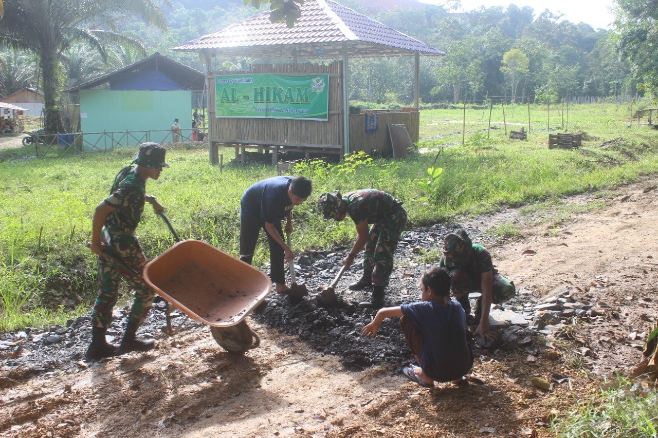 Sambas, KRsumsel.com – Karya Bakti TNI adalah salah satu upaya untuk melestarikan budaya kebersamaan dan gotong royong merupakan nilai luhur bangsa Indonesia. Karya Bakti TNI ini juga merupakan wujud nyata kemanunggalan TNI dengan rakyat, selain sebagai bukti kekompakan dan sinergitas yang baik antara Pemerintah Daerah, jajaran TNI, dan masyarakat, dalam rangka mewujudkan kesejahteraan masyarakat desa.