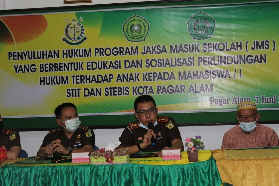 “Dia menyebutkan, sebelumnya jaksa dari Kejari Pagaralam menyambangi beberapa sekolah-sekolah salah satunya (SMA Negeri 4).Hari ini menyambangi kampus Sekolah Tinggi Ilmu Tarbiyah (STIT) serta Sekolah Tinggi Ekonomi dan Bisnis Islam (STEBIS) Kota Pagaralam.