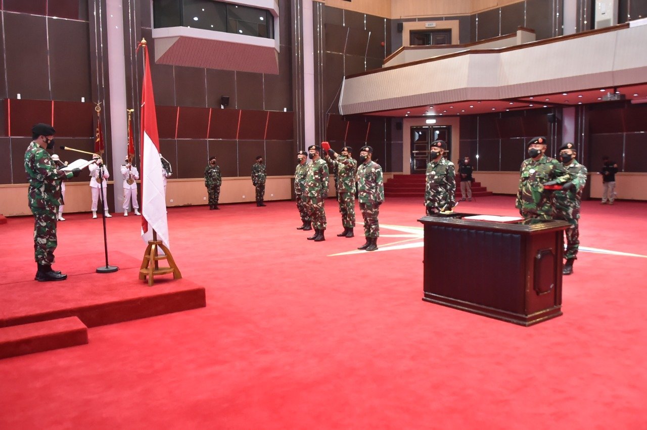 Sebagai pejabat baru Kasum TNI Letjen TNI Eko Margiyono, M.A., Dansesko TNI Marsda TNI Diyah Yudanardi, Danjen Akademi TNI Marsda TNI Andyawan Martono P., S.I.P. dan Aspers Panglima TNI Marsda TNI A. Gustaf Brugman, M.Si. (Han), melakukan pengambilan sumpah jabatan dilanjutkan penandatanganan pakta integritas dan berita acara serah terima jabatan, yang dipimpin langsung oleh Panglima TNI Marsekal TNI Hadi Tjahjanto.(****)