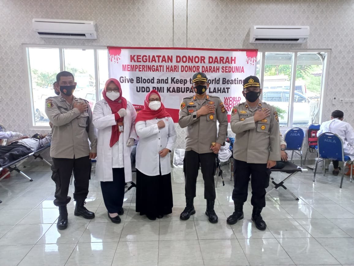 Lahat, KRsumsel.com – Dalam rangka menyambut Hari Bhayangkara ke-75 dan hari donor darah sedunian. Hari ini Polres Lahat bekerja sama dengan Palang Merah Indonesia (PMI) Lahat melaksanakan kegiatan Donor Darah.