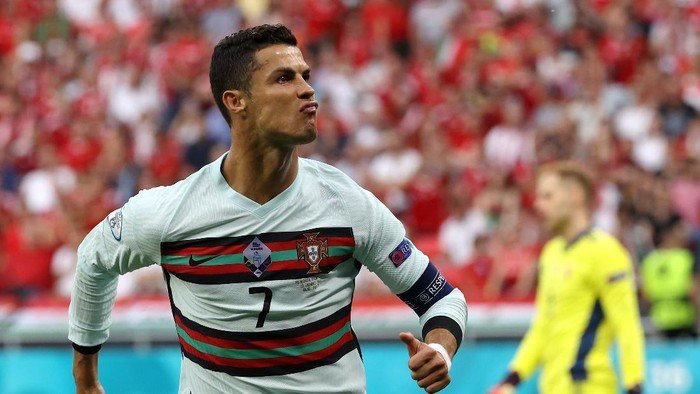 Ronaldo membukukan brace kala Timnas Portugal menjalani matchday pertama di Grup F Euro 2020 kontra Hungaria, Selasa (15/6/2021) malam WIB. Dalam pertandingan yang digelar di Puskas Arena itu, Selecao das Quinas menang 3-0.