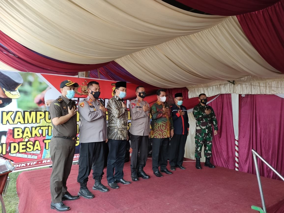BANYUASIN.KRSumsel.com – Kapolda Sumsel Irjen Pol Prof Dr Eko Indra Heri MM didamping Bupati Banyuasin H Askolani SH MH, Jumat (18/6)2021) meresmikan Desa Tebing Abang Kecamatan Rantau Bayur Kabupaten Banyuasin sebagai Kampung Tangguh Bersih Narkoba.