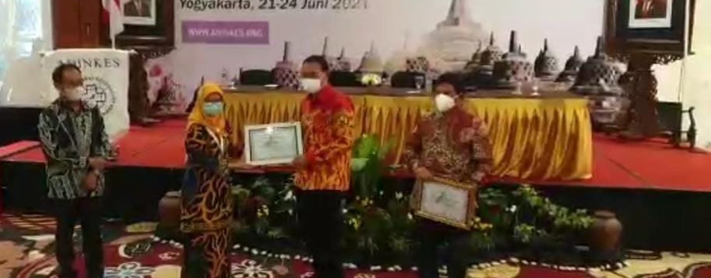 Penghargaan ini diserahkan Ketua Adinkes dr M Subuh kepada Bupati Banyuasin H Askolani yang diwakili Kepala Dinas Kesehatan DR dr Hj Rini Pratiwi, M Kes dalam Pertemuan Nasional Penguatan Layanan Kesehatan Yogyakarta 21-24 Juni 2021.