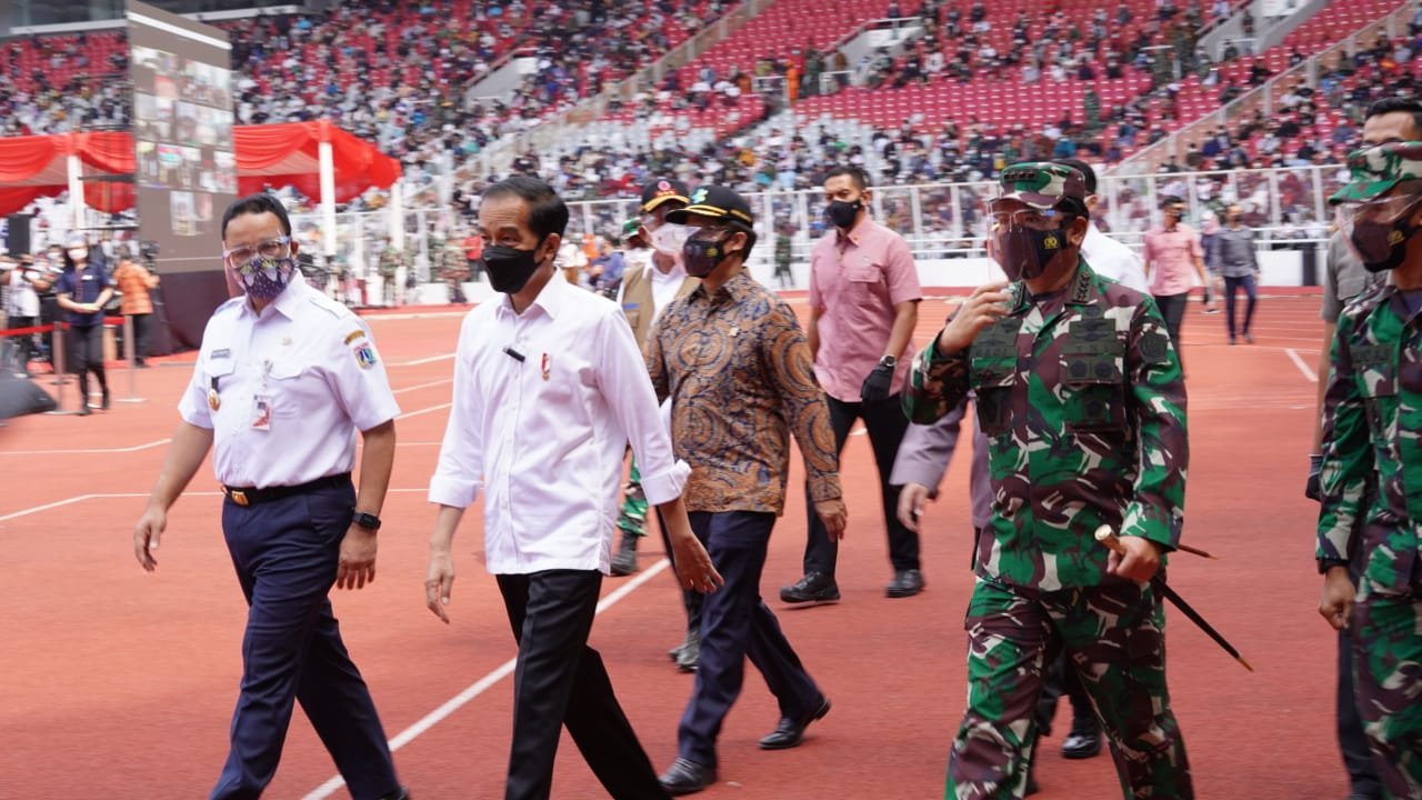 Peninjauan vaksinasi massal di GBK dilaksanakan Presiden Joko Widodo setelah melakukan peninjauan di Lapangan Bhayangkara Mabes Polri. Program vaksinasi massal tersebut merupakan program pemerintah, dimana target pelaksanaan Vaksinsai 1 juta vaksin setiap hari.