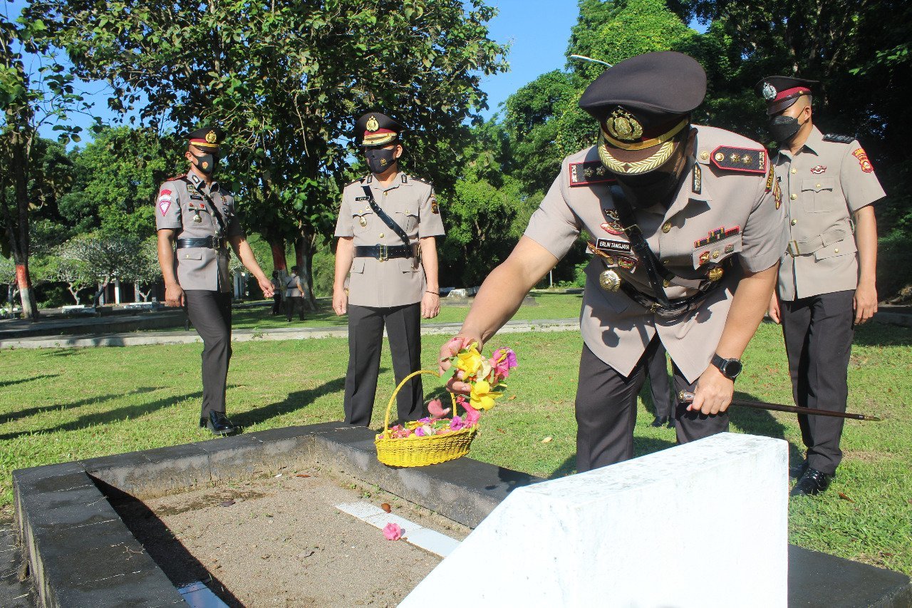Usai upacara, bersama pejabat utama polres Muba lainnya, Kapolres melakukan tabur bunga di makam para pahlawan.