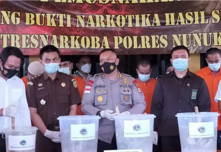 Nunukan, KRsumsel.com – Kepolisian Resor (Polres) Nunukan, Kalimantan Utara, memusnahkan narkotika jenis sabu-sabu seberat 18 kilogram dari hasil pengungkapan 16 kasus selama April-Juni 2021.