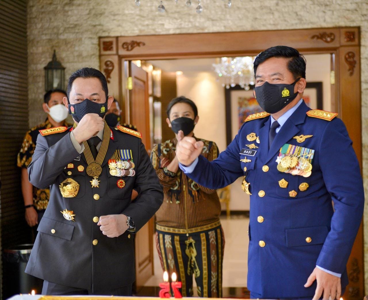 Jakarta, KRsumsel.com – Panglima TNI Marsekal Hadi Tjahjanto, S.I.P., memberikan kejutan kepada Kapolri Jenderal Pol Drs. Listyo Sigit Prabowo, M.Si., di Hari Bhayangkara Ke-75 dengan berkunjung langsung ke Rumah dinas Kapolri, Jakarta Selatan, Kamis (1/7/2021).