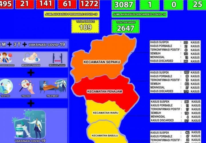 Penajam, KRsumsel.com – Jumlah warga yang dinyatakan positif Coronavirus Disease 2019 (COVID-19) di Kabupaten Penajam Paser Utara (PPU), Kalimantan Timur, hari ini mengalami penambahan cukup tinggi, yakni mencapai 25 orang.