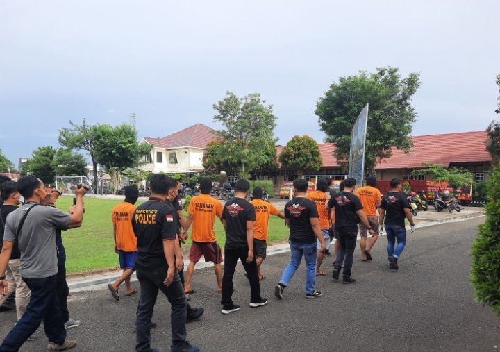 Pelaku yang diamankan pada hari itu adalah sebanyak tujuh orang, dan akibat perbuatannya para pelaku disangkakan Pasal 114 atau 112 dan 111 Undang-Undang No. 35 Tahun 2009 tentang Narkotika, dengan ancaman hukuman maksimal 20 tahun penjara dan minimal enam tahun penjara.(Anjas)
