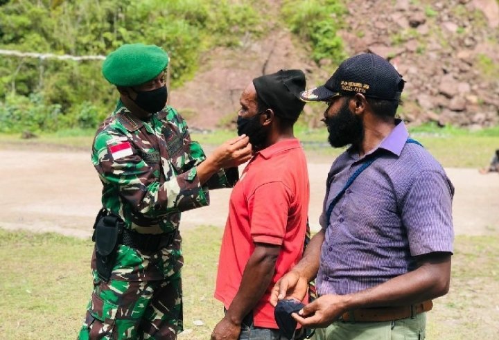 Sementara itu, Kepala Suku Kampung Beane Kogom Yoap Beanal yang mengucapkan terima kasih atas kegiatan yang dilakukan Satgas Pamrahwan Yonif 315/Garuda dalam mendisiplinkan protokol kesehatan kepada masyarakat dengan pembagian masker.